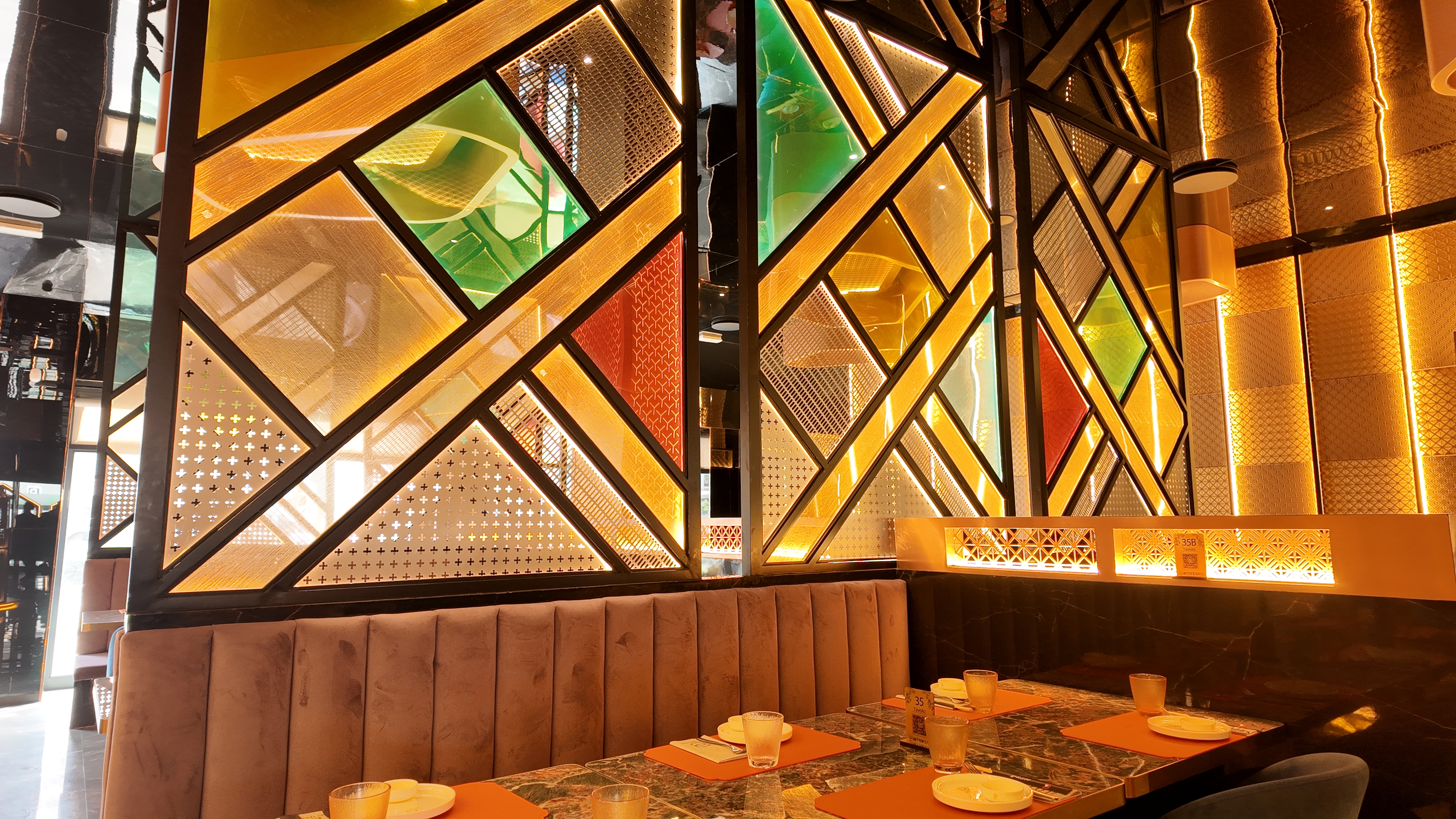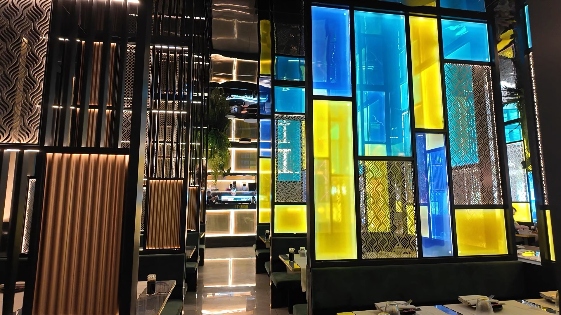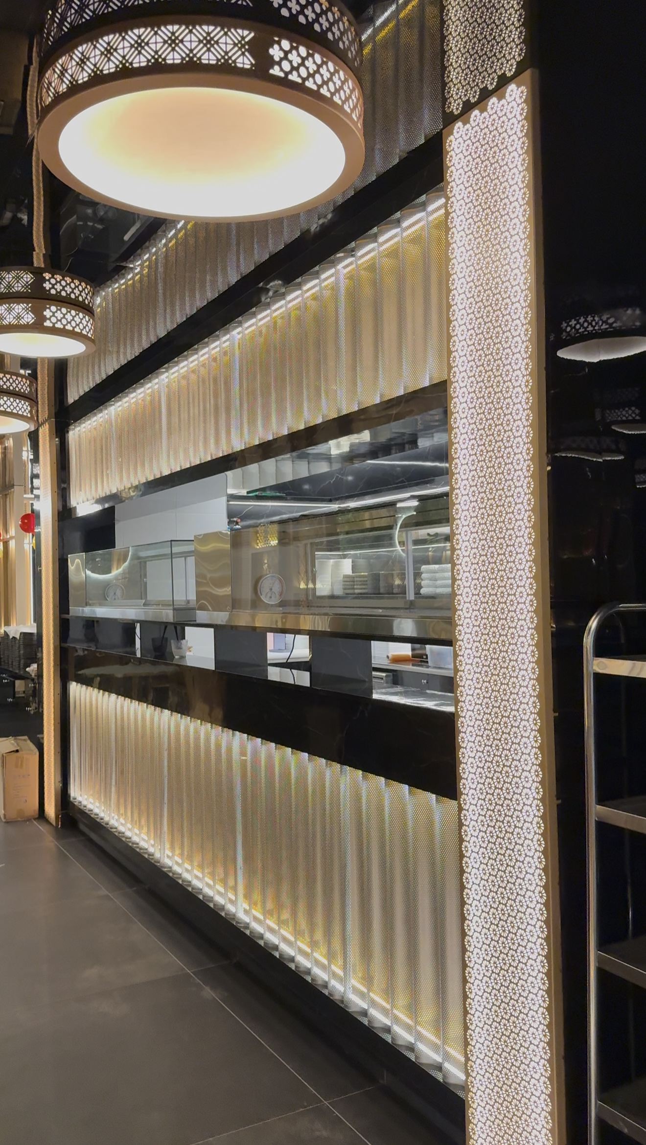 Modern style renovation fully incorporating luxurious high-end elements. The entrance water curtain brings customers an elegant and comfortable dining environment. Ingenuity in design: every detail showcases the team's dedication, with clever aluminum alloy and glass combinations elevating the space.