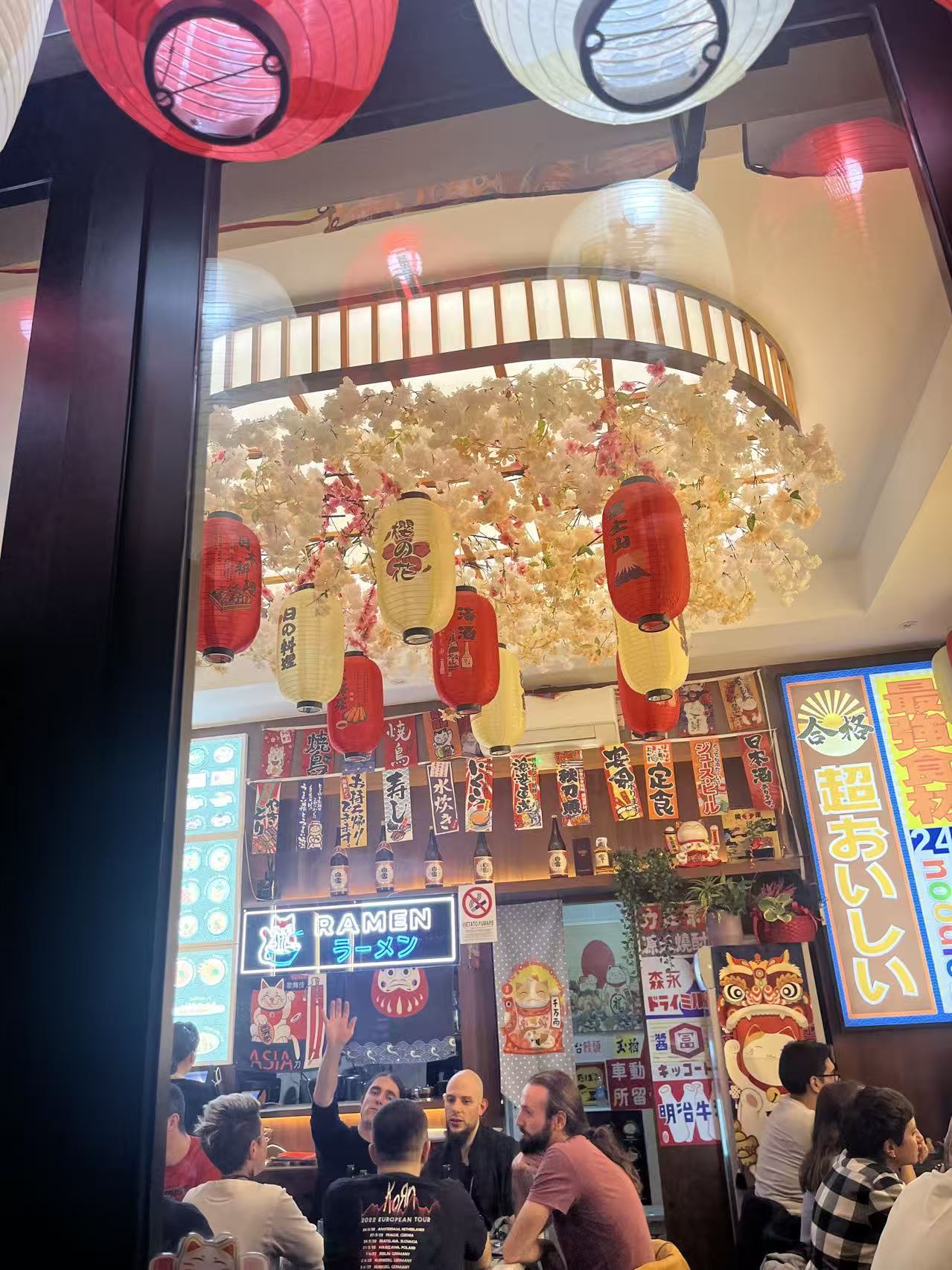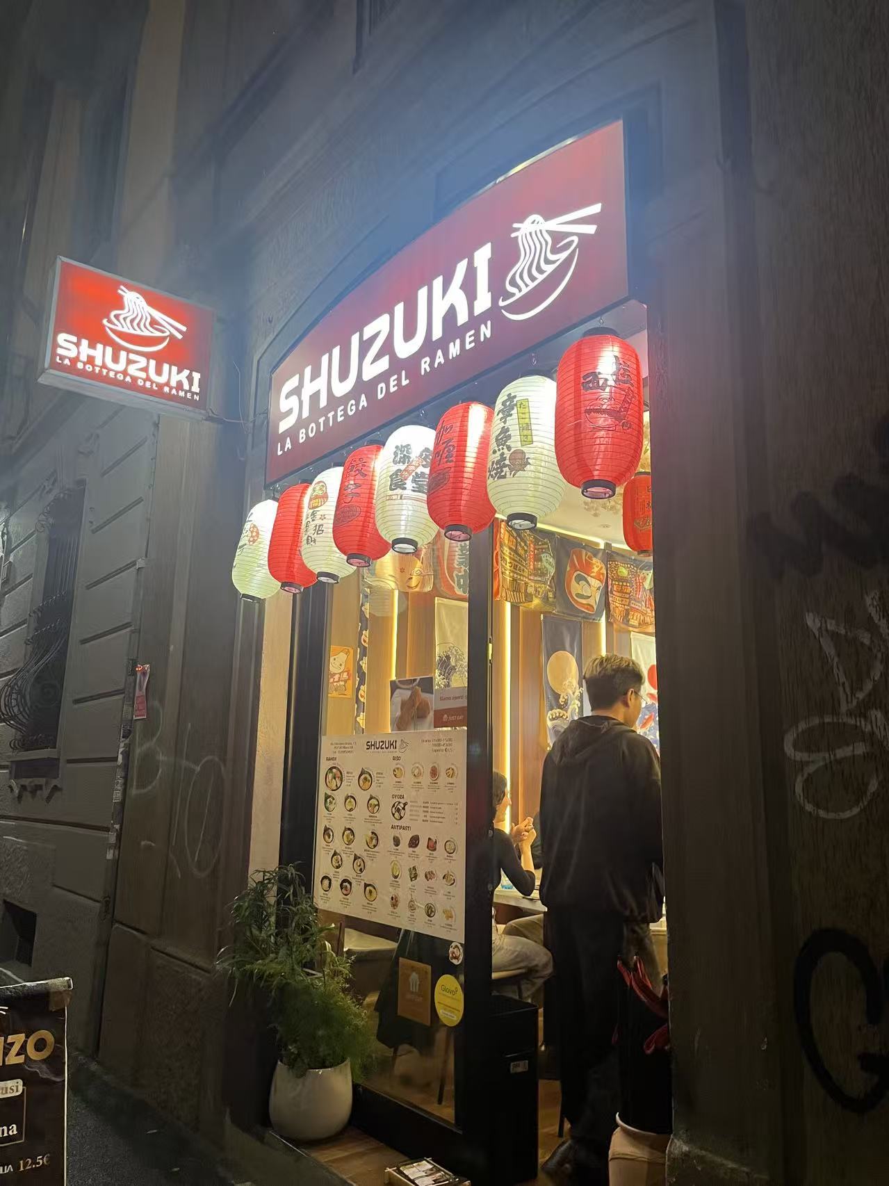 米兰华人街,日式复古樱花风拉面店!樱花点缀、木质结构,温馨舒适得仿佛置身漫画场景。
