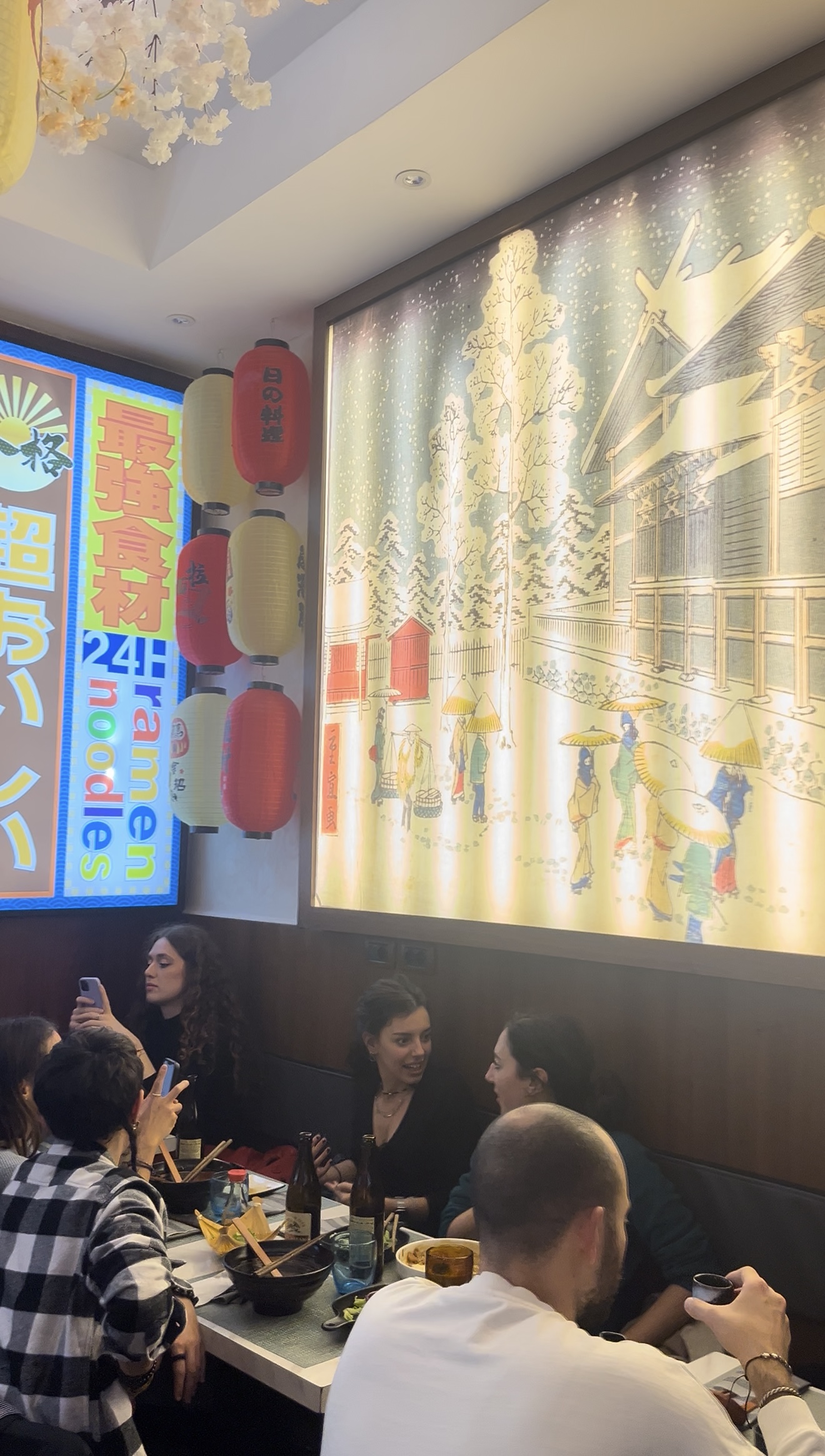 Chinatown di Milano, ramen giapponese retrò con fiori di ciliegio! Accenti floreali, strutture in legno, accogliente come una scena manga.